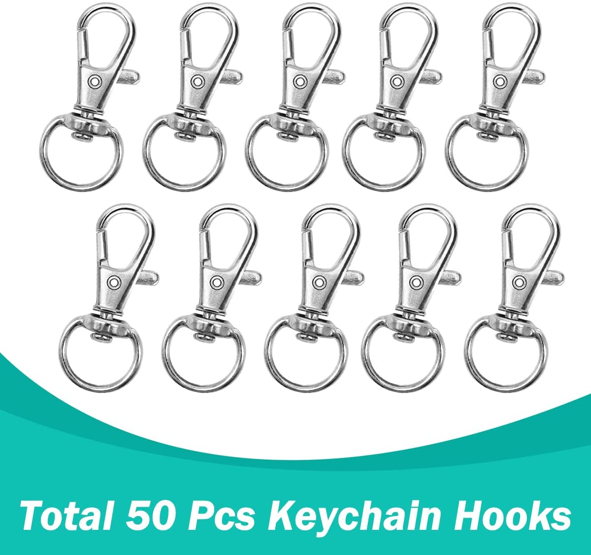 100 Pcs Premium Swivel Snap Hooks with Key Rings,Metal Lanyard Keychain Hooks Lobster Clasps for Key Jewelry DIY Crafts 1.25inch/32mm(50 Pcs Lanyard Snap Hooks+50 Pcs Key Rings)