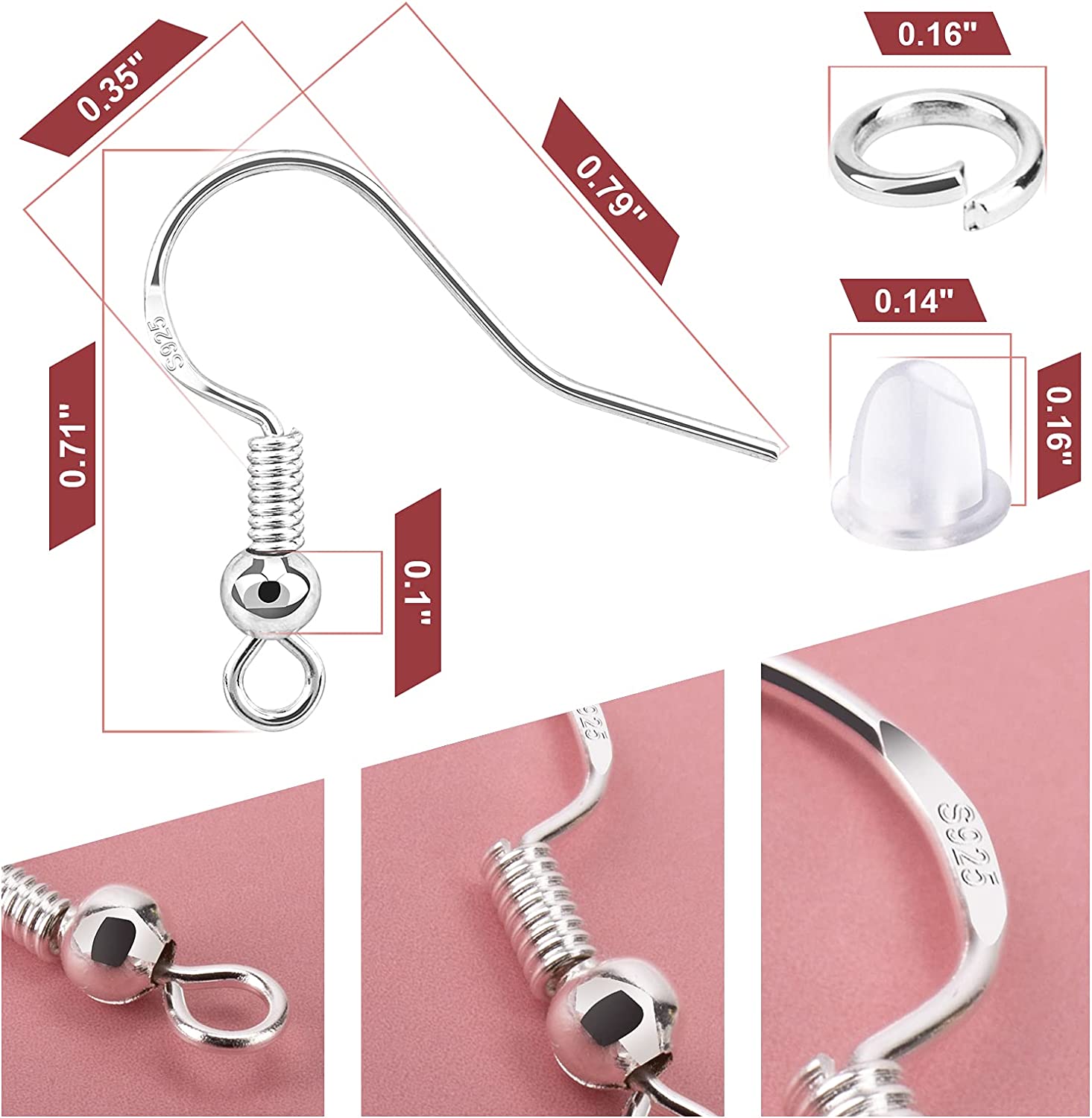 100 PCS/50 Pairs Earring Hooks, 925 Sterling Silver Hypoallergenic Earring Hooks for Jewelry Making, 300 PCS Upgraded Earring Making kit, Earring Making Supplies with Earring Backs and Jump Rings