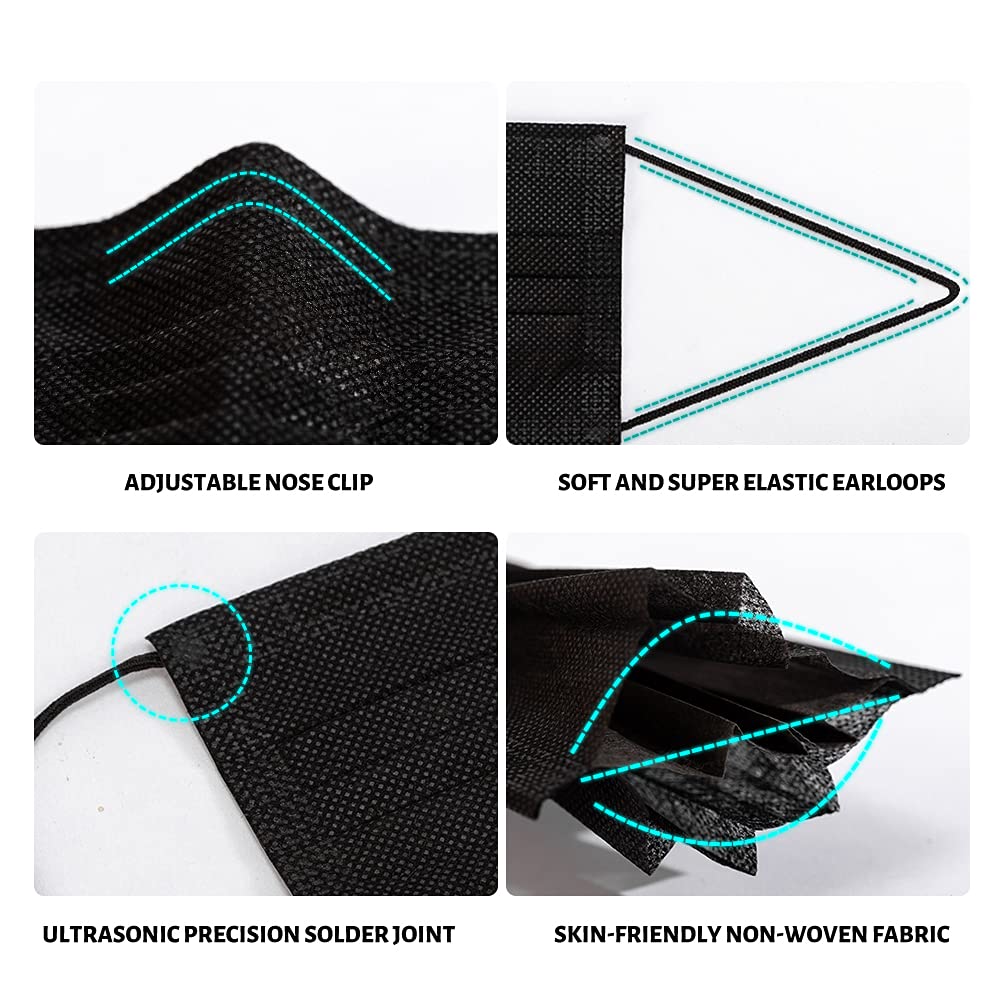100PCS Black Disposable Face Mask 3 Ply Filter Protection Breathable Face Masks