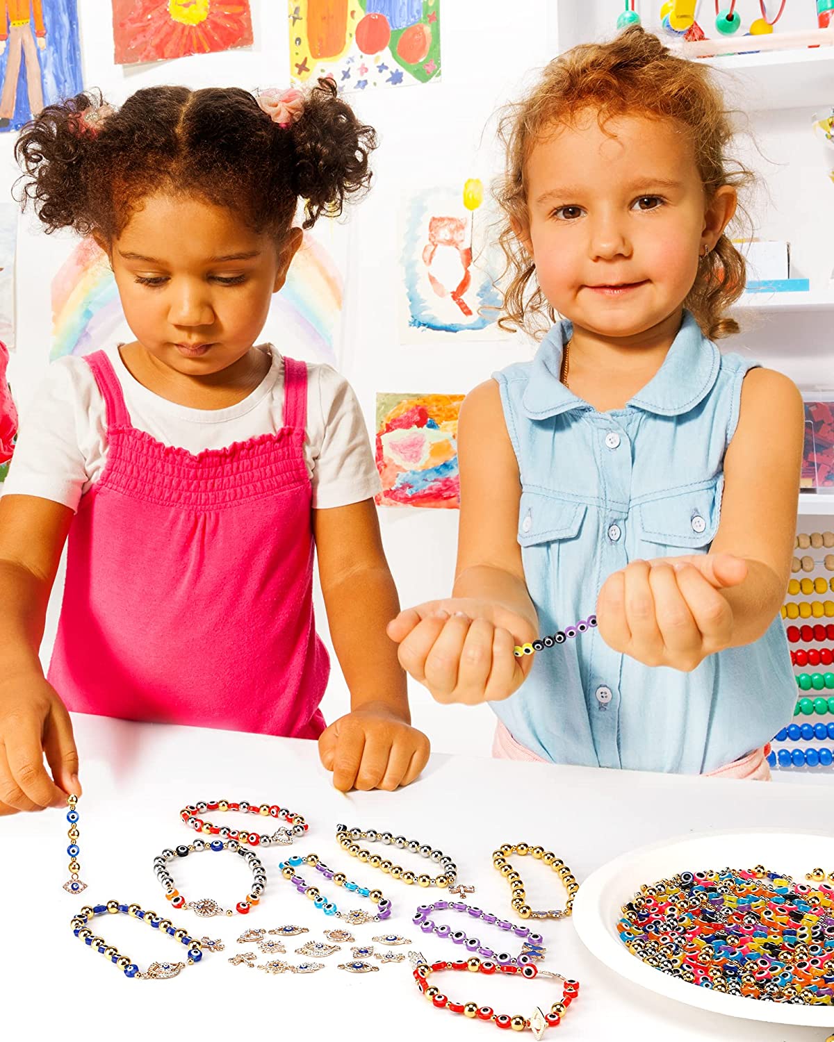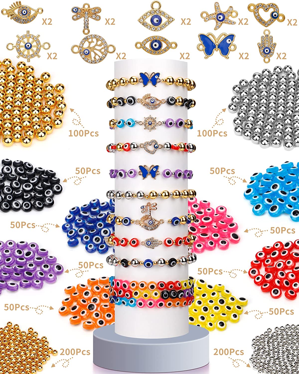 1022 PCS Evil Eye Beads for Jewelry Making, 8mm Flat Round Evil Eye Charms Colorful Evil Eye Bracelet Making Kit Easter Beads Decors for Crafts DIY Bracelet Earring Necklace Making