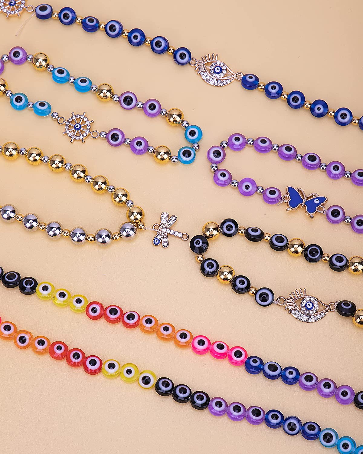 1022 PCS Evil Eye Beads for Jewelry Making, 8mm Flat Round Evil Eye Charms Colorful Evil Eye Bracelet Making Kit Easter Beads Decors for Crafts DIY Bracelet Earring Necklace Making