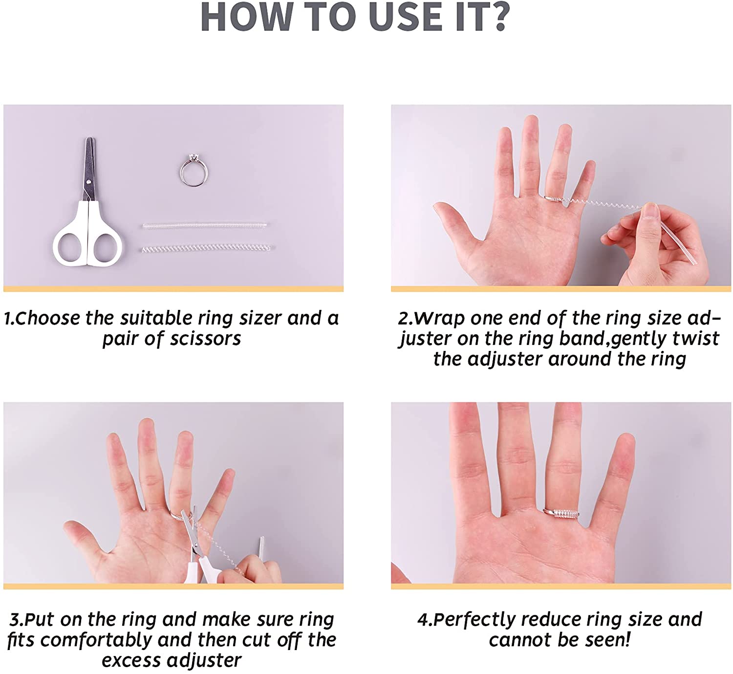 12 Pack Ring Size Adjuster for Loose Rings Invisible Transparent Silicone Guards Clip Noodle Jewelry Tightener Connector Fitter Resizer 4 Sizes Fit Almost Any Ring for Women and Men