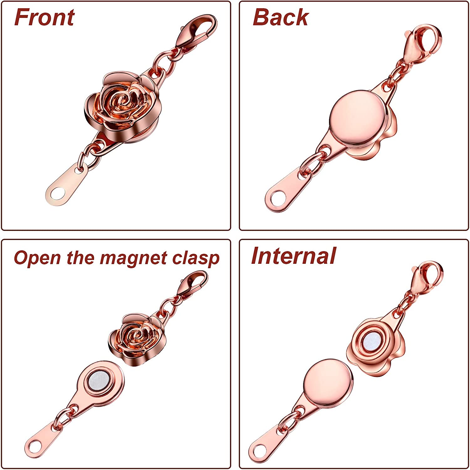 12 Pieces Locking Magnetic Clasps Rose Jewelry Magnetic Clasp Necklace Lobster Clasp Closures Magnetic Clasp Converter Chain Extenders for Jewelry Necklace Bracelet (Gold, Silver, Rose Gold)