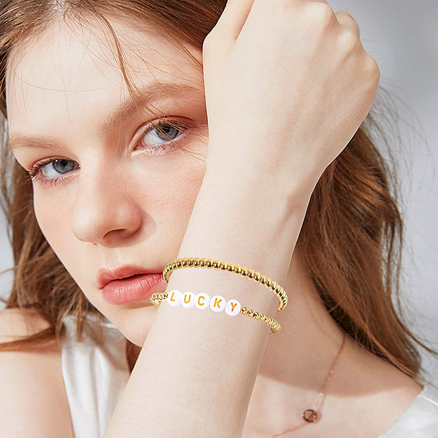 1200Pcs 4mm Smooth Round Beads Gold Spacer Loose Ball Beads for Bracelet Jewelry Making Craft