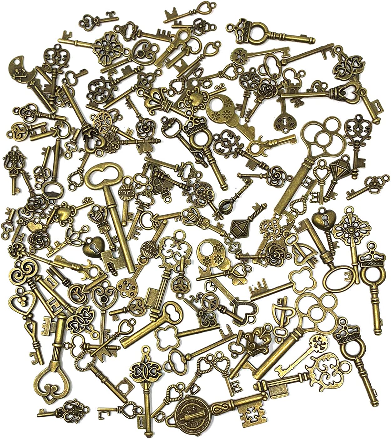 125 PCS Vintage Skeleton Key Set Charms, JIALEEY Mixed Antique Style Bronze Brass Key Set Charms for Pendant DIY Jewelry Making Wedding Party Favors