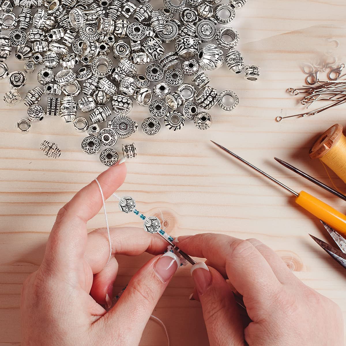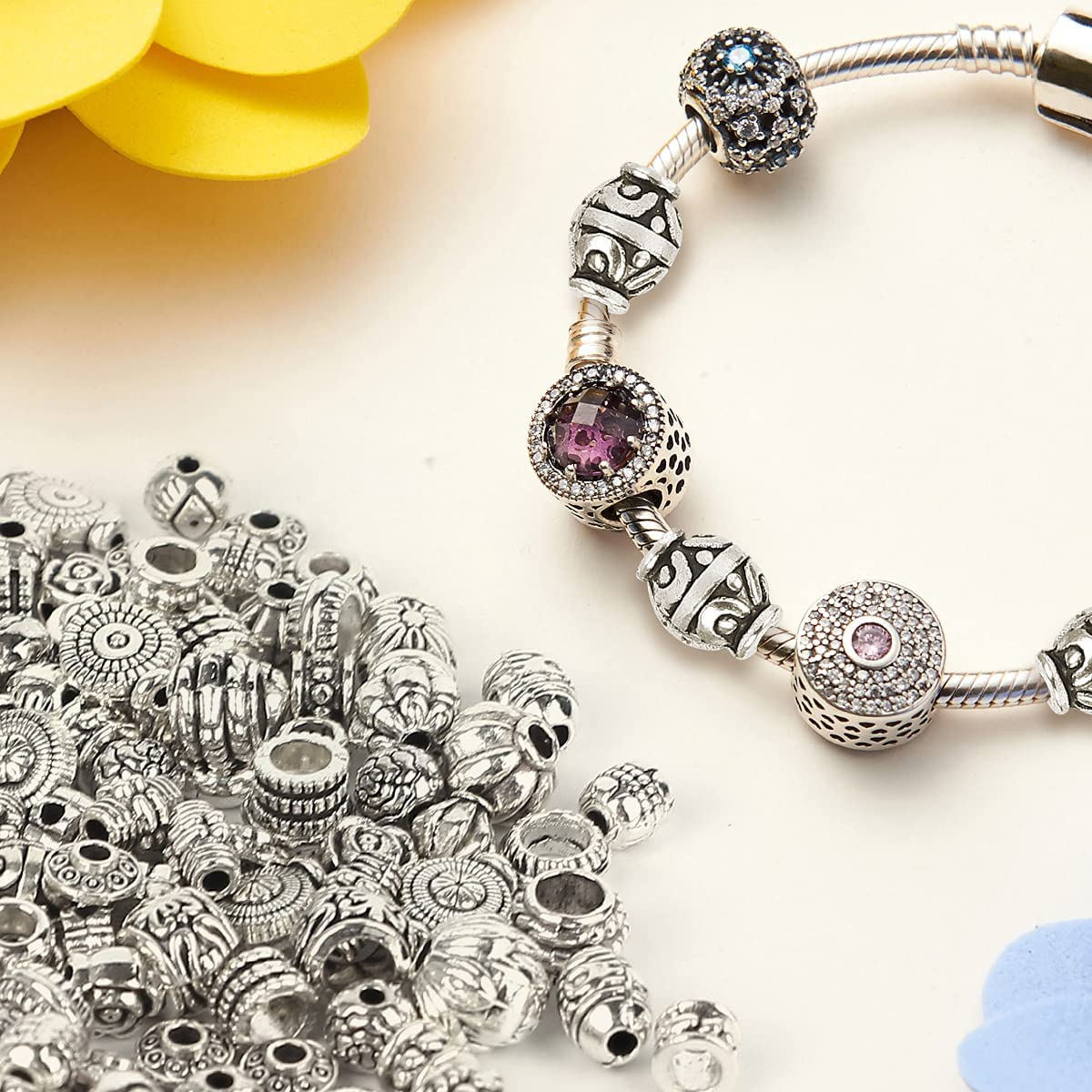 180 Silver Spacer Beads - 100g Tibetan Antique Silver Color Metal Beads Small Loose Spacer Beads with Radom Styles for Jewelry Making DIY Charm Bracelets