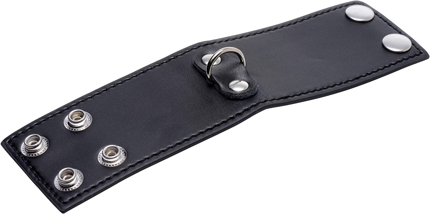 Whether you are masturbating, having sex with your lover, or being teased by your Master or Mistress, you will love the unique sensation that this ball stretcher produces. As your balls retract during stimulation, this attractive cuff will resist, simulating a tugging feeling that many men find to be the height of ecstasy. This ball stretcher will also create a stunning visual for you and your lover to be turned on by. A D-ring at the front allows you, or your partner, to attach weights or other devious accessories. The snap closures allow you to easily and quickly remove the device whenever you please. Measurements: Adjusts from 5 to 6 inches in circumference. 2 inches in width. Material: PU leather, metal. Color: Black.