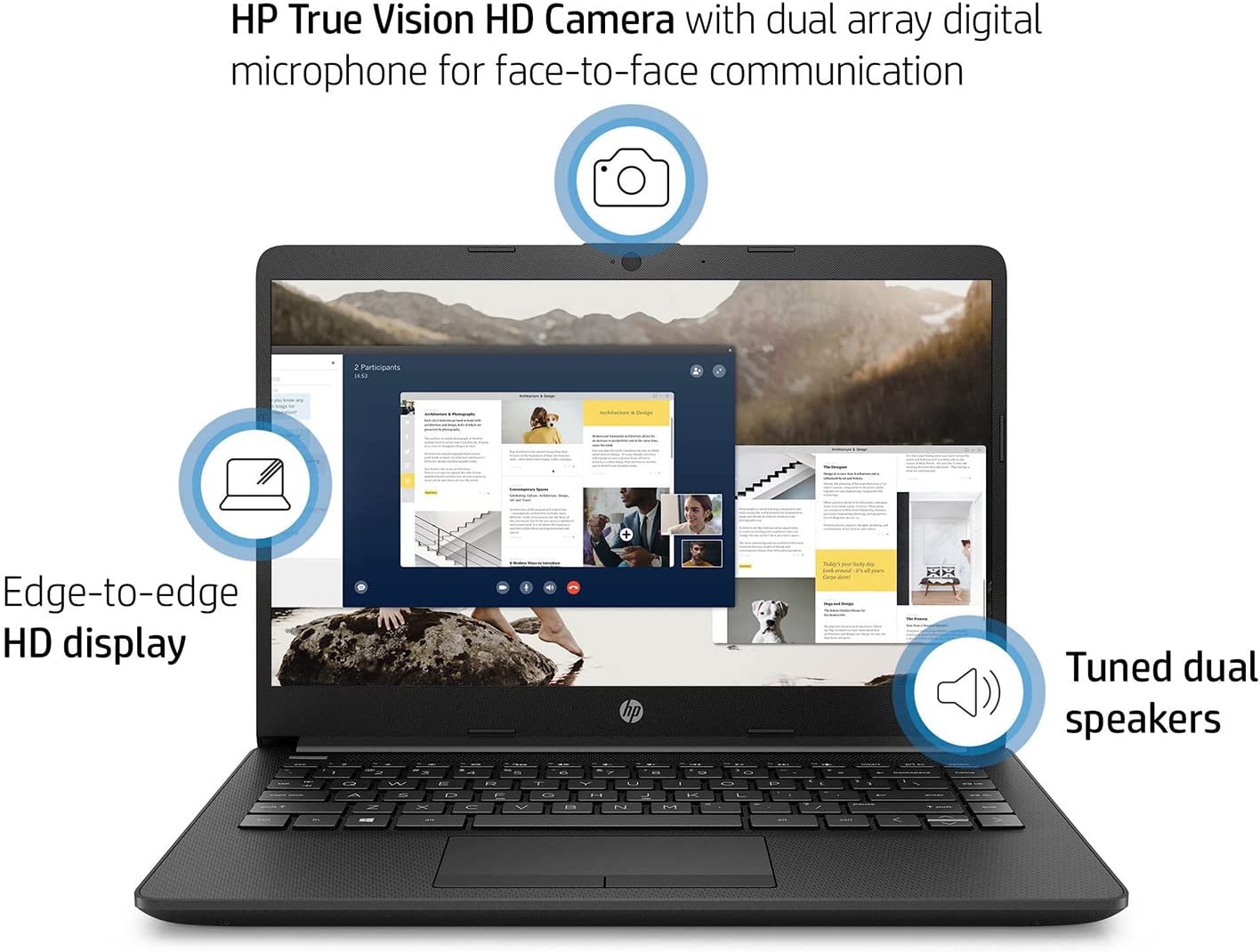 Built-in HD Webcam: HP True Vision 720p HD camera with integrated dual array digital microphones