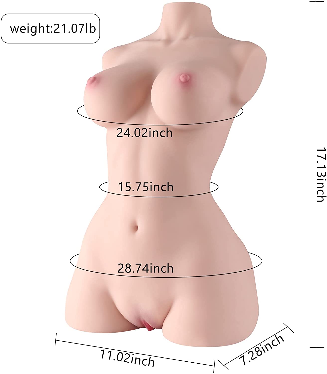 21LB Sex Doll Male Masturbators, 3D Vaginal Anal Stroker Toy Pocket Pussy Big Boobs Female Torso Realistic Tight Ass Pussy Butt, Adult Toys Love Doll for Men Masturbator