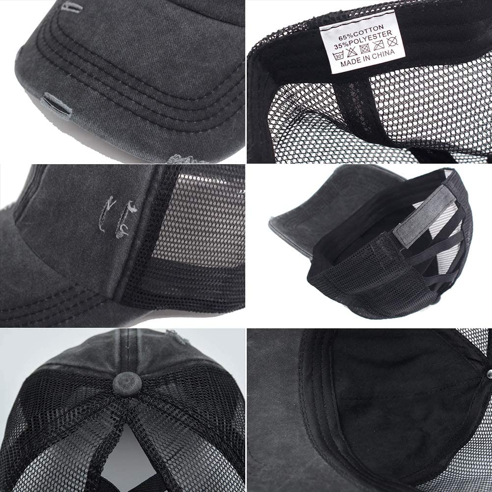 Didida 4 Pack Vintage Washed Distressed Criss Cross Hat Cotton Women's Dad Baseball Cap Adjustable Polo Trucker Unisex Style Headwear Ponytail Messy Bun Pony Cap