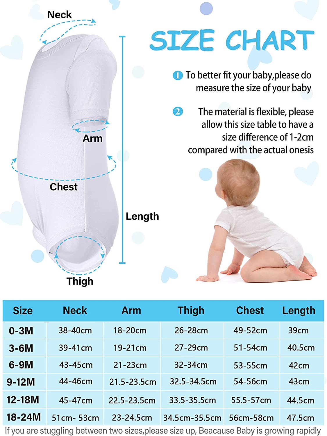 4 Pieces Baby Bodysuit Sublimation White Short Sleeve Shirt for Unisex Preemie Month Baby Boys Girls