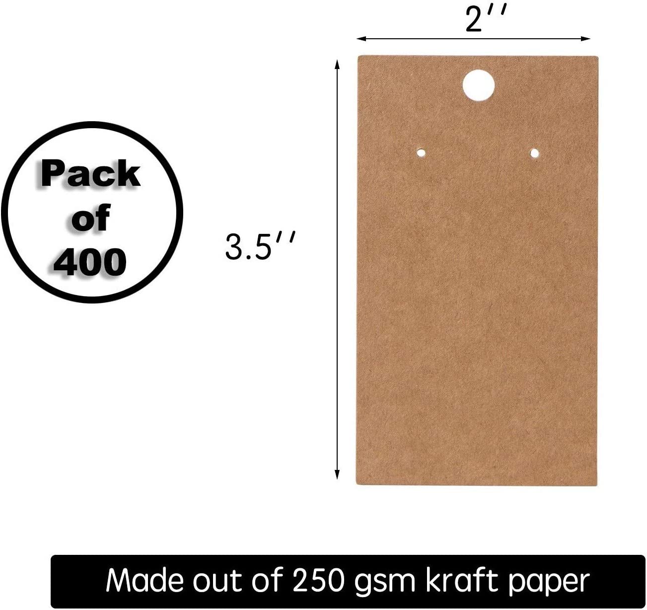 400 earring cards VALUE BUNDLE- Good quality with price at less than .03 cents for each card, great value and long lasting. PROFESSIONAL MADE- Solid thick Kraft paper, perfect for displaying earrings and other jewelries. SIMPLE AND EASY TO USE - Earring Cards comes with puncture holes, make it simple to display your earrings and jewelries. EARRING CARD SIZE- Each card measures 2 x 3.5 inches, perfect size for hanging. 100% COMPLETE SATISFACTION - If for ANY reason you not satisfied with your purchase on our ‘’400 Pack earring cards'', Bargain Paradise Corp guarantees 100% easy hassle free return within 30 days after purchase for FULL REFUND or exchange with no questions asked!