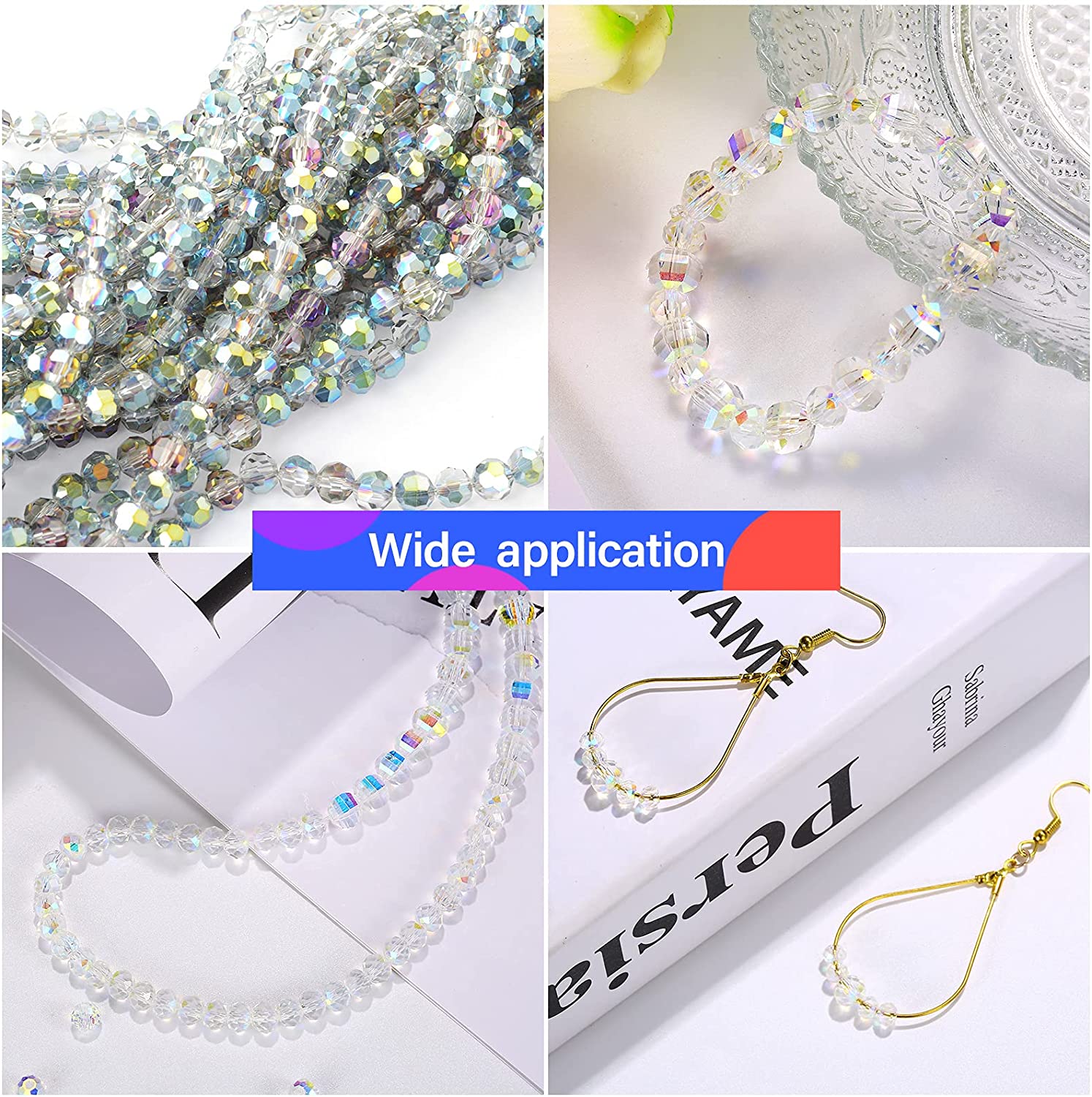 600 Pieces Crystal Rondelle Faceted Beads Gemstone Glass Beads Loose Beads Briolette Bead for DIY Jewelry Crafts Making 8 mm, 6 mm, 4 mm (AB Color)