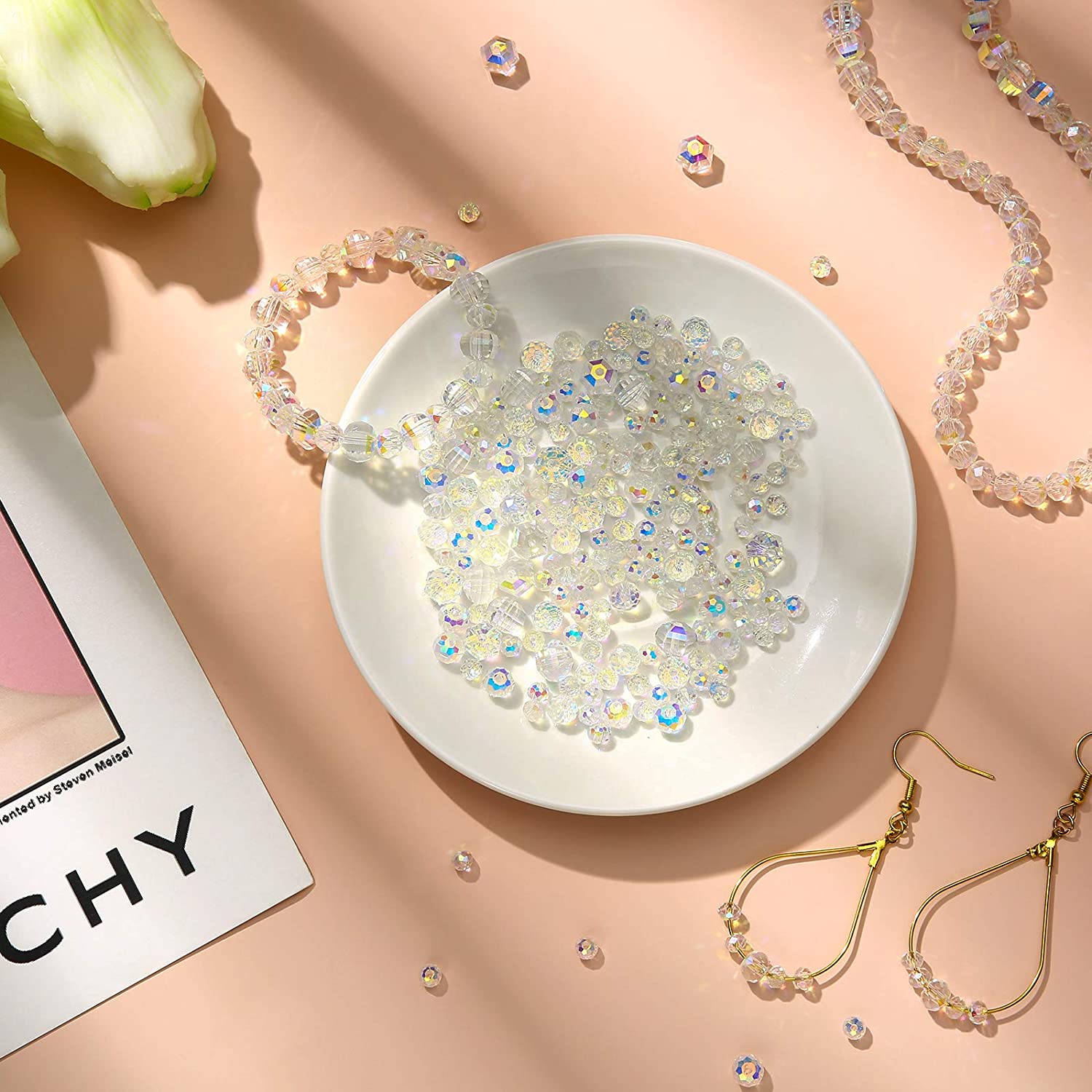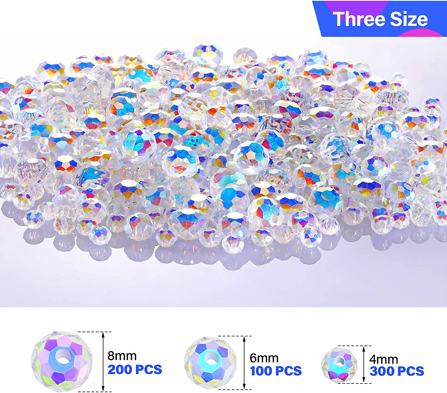 600 Pieces Crystal Rondelle Faceted Beads Gemstone Glass Beads Loose Beads Briolette Bead for DIY Jewelry Crafts Making 8 mm, 6 mm, 4 mm (AB Color)