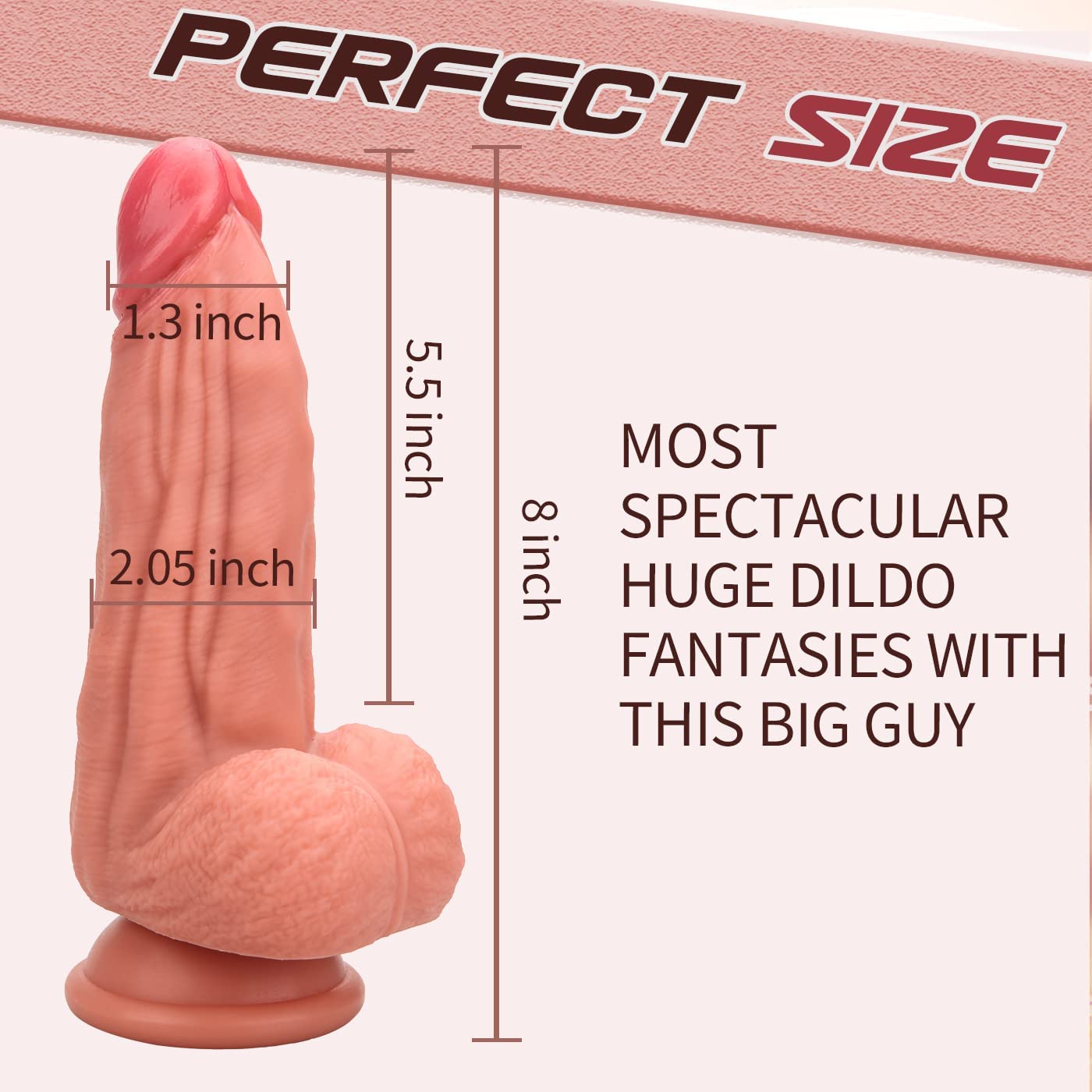 8 Inch Realistic Huge Dildo, Lifelike Silicone Dildo with Strong Suction Cup for Hands-Free Play, Flexible Dildo Anal Play Vaginal G-spot Masturbation for Women Men and Couple