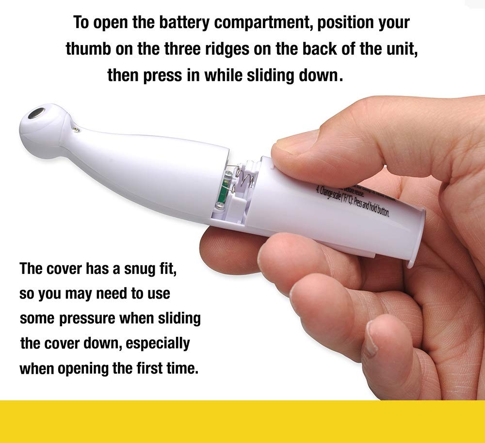 Non-invasive forehead temperature measurement using patented conductive technology delivers clinically accurate readings in about 6 seconds. Reduces the risk of cross contamination and avoids the need for costly probe covers. Ideal for the hospital, clinic, or physician office. Auto off function conserves battery life. Audible tone when measurement is complete. Last reading memory. Dual scale ( degree-F/ degree-C). Uses 2 AAA batteries (included).