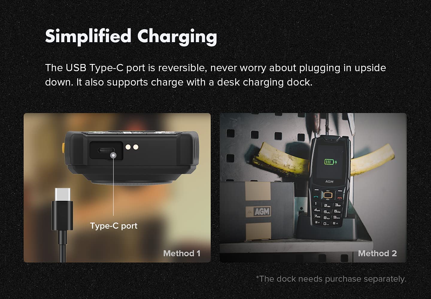 AGM M6 4G Rugged Phone Unlocked Phone Cell Phone for Seniors & Kids, Dual SIM IP68/IP69K Waterproof Phone, MIL-STD-810H, T-Mobile, 2.4" Screen 48MB+128MB 2500mAh Battery Black, Big Font, Big Speaker