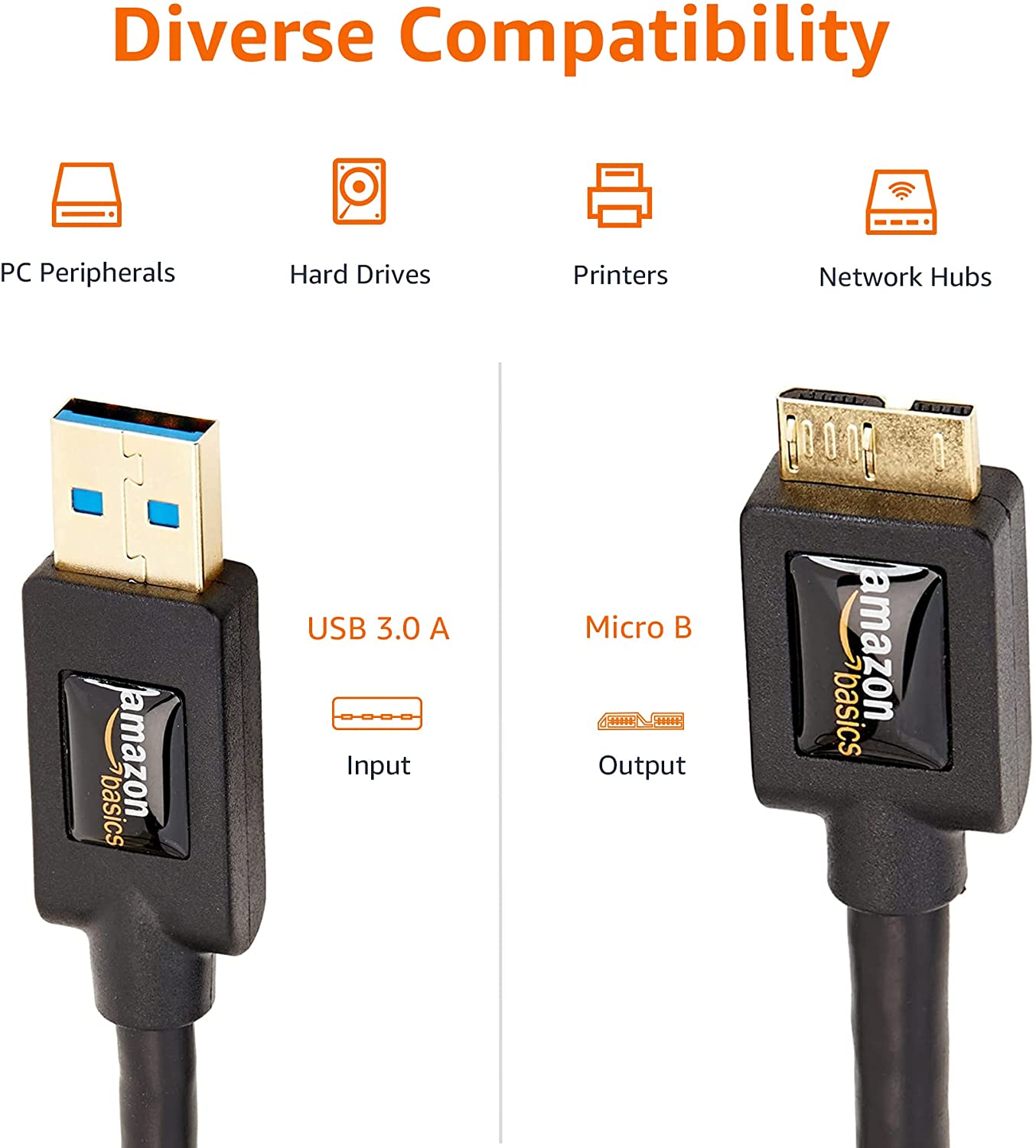 Amazon Basics USB 3.0 Charger Cable - A-Male to Micro-B - 3 Feet (0.9 Meters), Black