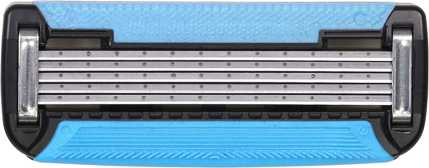 Solimo 5-Blade MotionSphere Razor for Men features a multi pivot design to follow the contours of your face and a beard trimmer for shaving goatee, sideburns and under nose. The razor cartridge is hypoallergenic, includes a lubricating strip with vitamin E, and has an anti-clog design for quick rinse. To load refill cartridge, push razor handle into a cartridge as it sits in the dispenser until it clicks. Cartridges fit Solimo Razor Handles only; does not fit other brands.