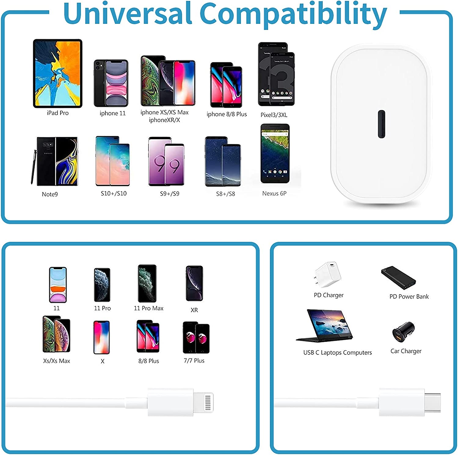 20W USB C Fast Wall Charger with 6FT C to Lightning Cable Type C Charger Adapter