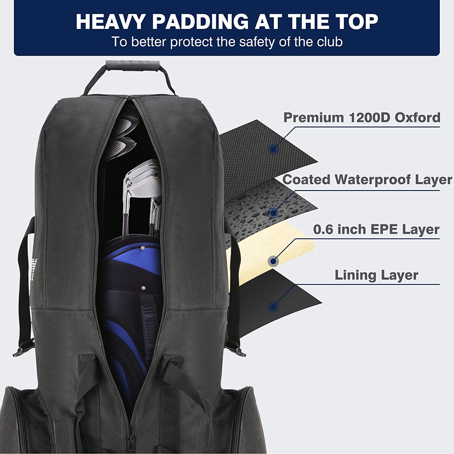 APTY Padded Golf Club Travel Bag with Wheels, Golf Luggage Case Cover for Airlines - 1200D Wear-Resistant Oxford, Waterproof Coating Layer, Universal Size