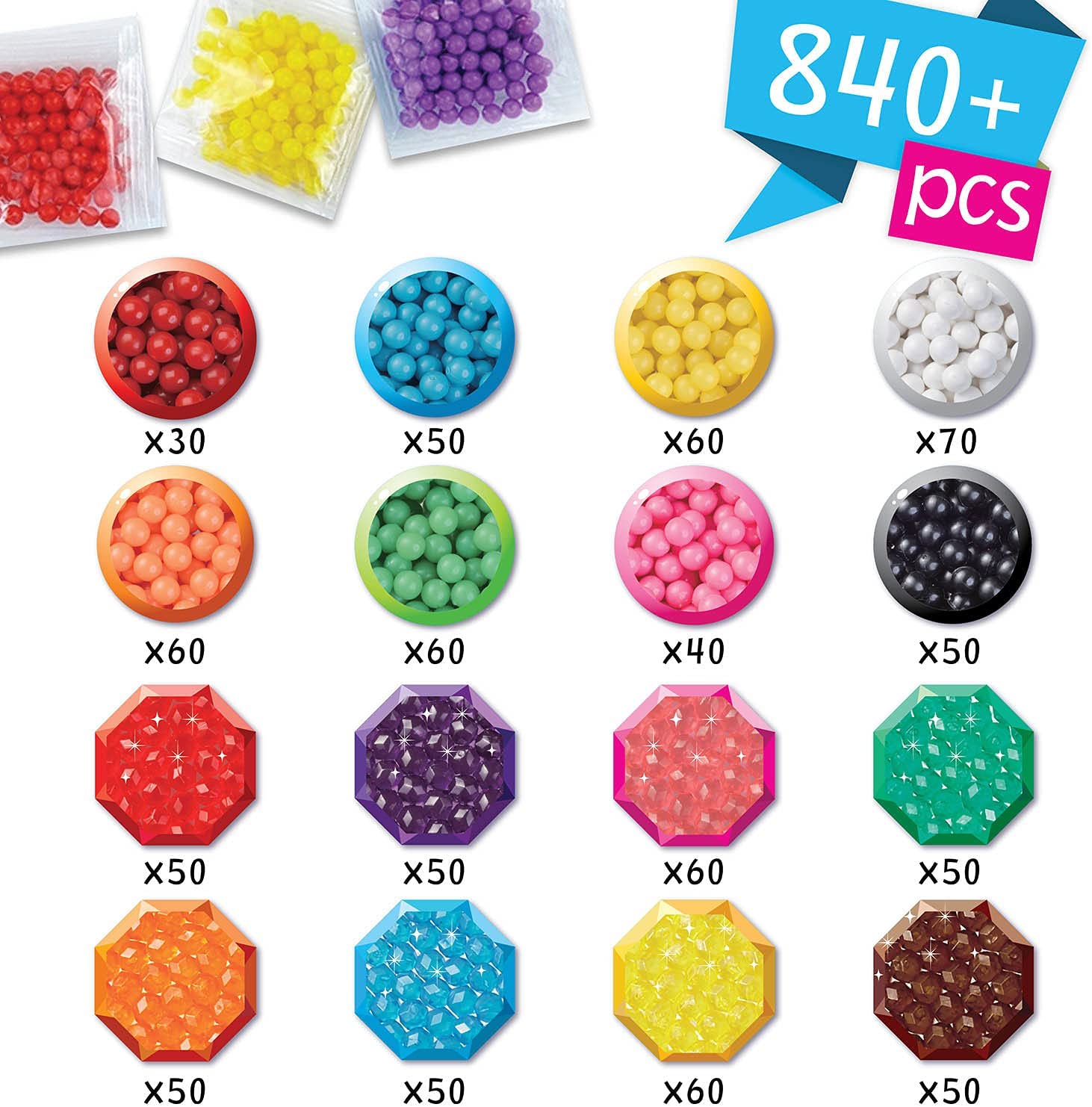 Aquabeads is the Original Water-Activated Bead Craft Kit! Since 2004, children throughout the world have created millions of Aquabeads designs. Great set for an introduction to the Aquabeads collection! This complete set contains over 800 jewel and solid beads in 16 colors, bead case, bead flipper with layout tray, sprayer, pen, template sheets & instructions. After crafting an original design, just spray your creations with water, no heat required! Create your designs quicker than before with the new bead flipper. Connect this set with the Deluxe Studio (sold separately) for double the fun! Suitable for children ages 4 and up.