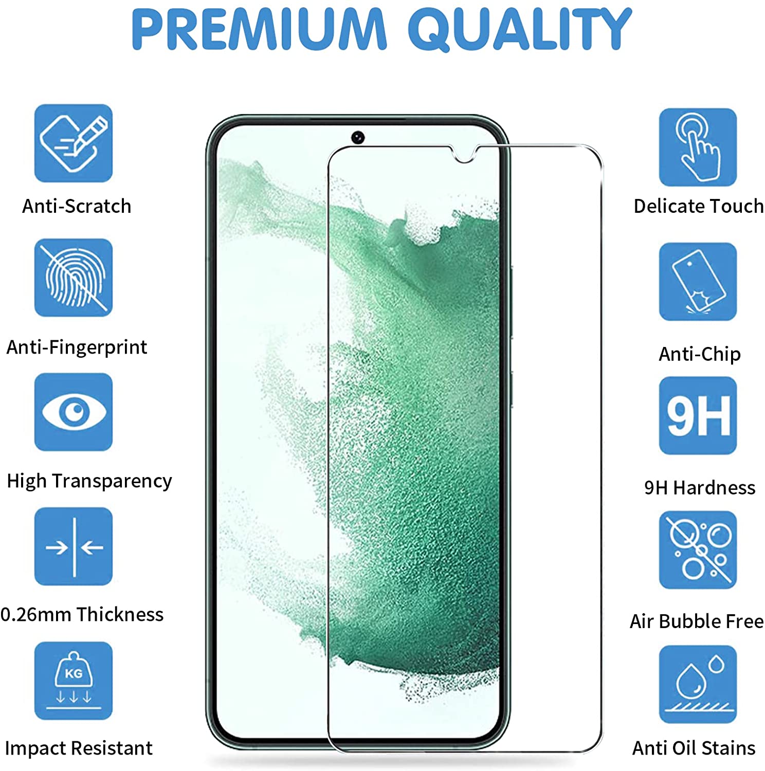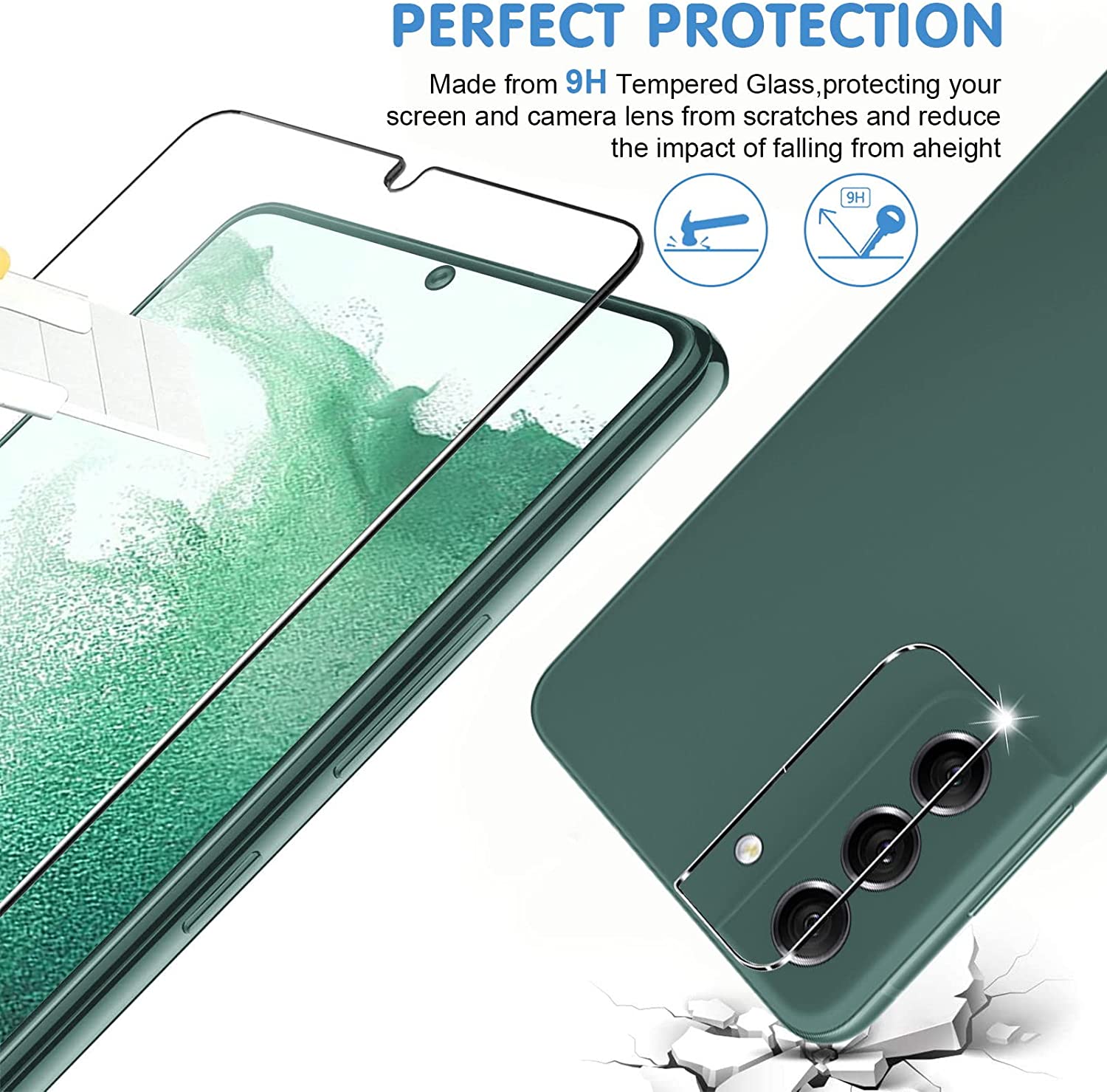 【6 Pack】3 Packs S22 Tempered Glass Screen Protectors with 3 Pack glass Camera Lens Protectors -- Only for S22 , Not for any other Models.ATTENTION: Activate the Touch Sensitivity Setting as follows,1: Open "Settings"2: Navigate to "Advanced Features"3: On the bottom, find and activate "Touch Sensitivity"and After pasting the tempered film, re-scan your fingerprint of the same finger twice at different angles to unlock more sensitively (IMPORTANTLY)*NOTE* QUICK & EASY INSTALLATION-No bubbles-Automatic Adsorption1 - Clean and dry your screen with included wet cloth and dry cloth.2 - Use "Dust absorber" to absorb any dust on screen.3 - Carefully peel off the backing of the screen protector.4 - Line up and apply the film to the screen.5 - Use your thumb to press down the edge of screen protector, make sure it adhere well. Product Feature: —Support Ultrasonic Screen Fingerprint, Compatible with Face Recognition. High touch sensitivity gives "True Touch" feel.—Does not fall off, Precise laser cut Full Glue Sticky tempered glass with 2.5D rounded edges technique —Case Friendly with most phone cases, Extra space is left around the borders for your case to wrap around the edges of your phone. —HD Clear 99.9% transparency crystal glass to remain the High-Definition image quality. —9H hardness tempered glass that can powerfully resist wear & scratches, impact & drop; offering durable protection. —Anti-oil coating reduces collecting fingerprints,oil on the surface, allowing for crystal clear viewing.Package:3 x Galaxy S22 Tempered Glass Screen Protector3 x Tempered Glass Camera Lens Protector3 x Wet & Dry Wipes, 3 x Dust-Absorber, 1 x Instruction Manual
