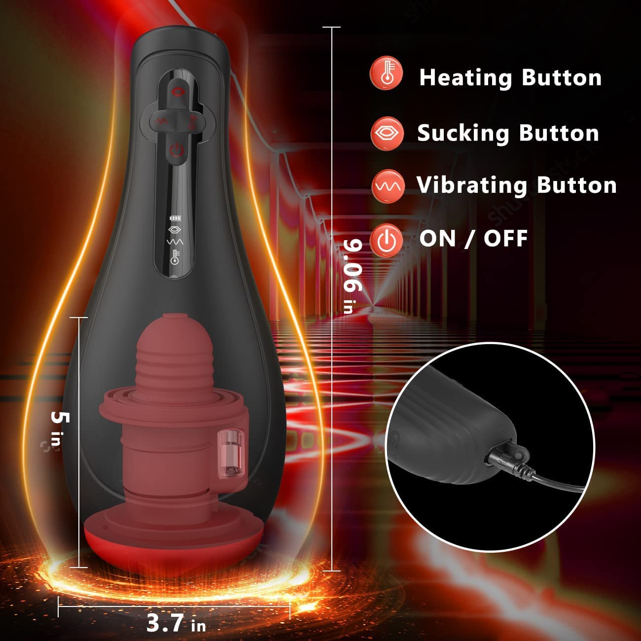 Automatic Sucking Male Masturbators Blowjob Machine with Led Display Screen 5 Suctions & 6 Vibrations, Heating Full Silicone Wrap Sex Toys for Men Masturbation with Pocket Pussy Stroker