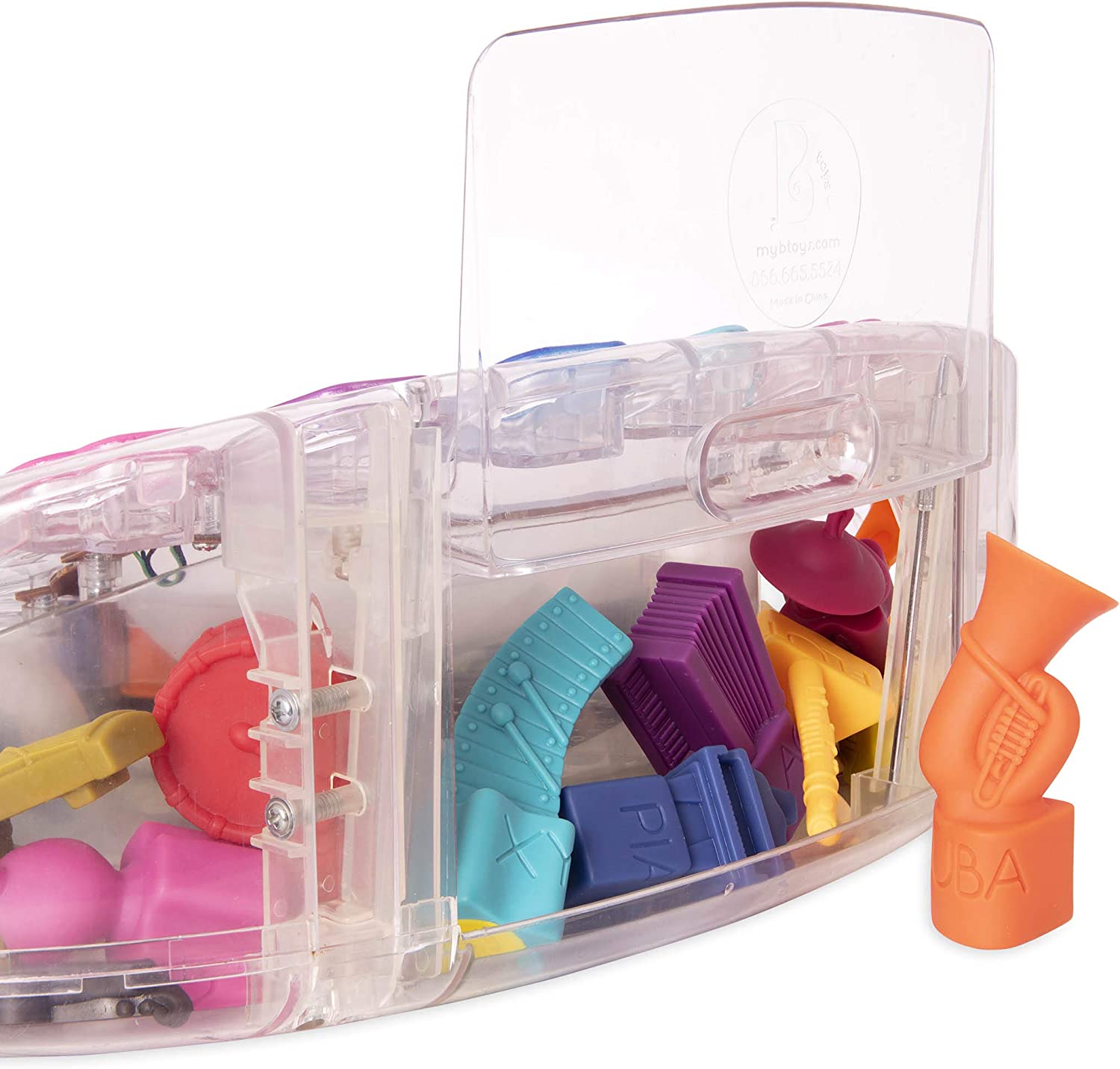 Give the gift of beautiful music with the B. Symphony toy orchestra from b toys! 13 instruments. 15 songs. The musical possibilities are endless. Choose your song and up to 6 instruments. Place them in the orchestra pit and hear them play all together. Change up the instruments (while the song plays) for a musical transformation. The perfect birthday or Christmas present for 3-6-year-old girl or boy. One of the best musical toys for toddlers and kids a little older, this toddler music set is sure to charm The whole family! Share a unique moment with your child as he discovers the beautiful sound The sitar can make or bring it to the next family reunion and see how this toy orchestra will please all generations. Beautiful, rich, professionally recorded sounds; it feels like conducting a real Symphony! Control the volume and the Tempo too! Early introduction to music concepts can kick-start learning and will offer lifelong benefits. Kids respond best to the music experience when they actively experience It, like with this musical instrument set for toddlers. This Symphony orchestra comes with 13 toy musical instruments for kids, a music booklet, detailed instructions of all the functions and 6 x AA batteries. With endless musical combinations, This one will give your home musical Vibes for sure. Music maestro!