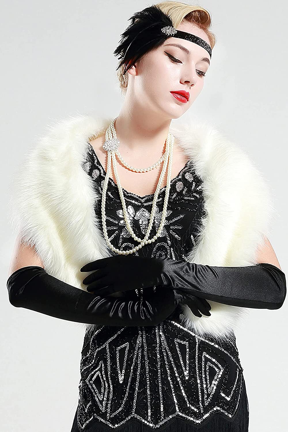 BABEYOND Women's Faux Fur Shawl Party Faux Fur Collar Fur Wraps for Winter Bridal Wedding Cover Up