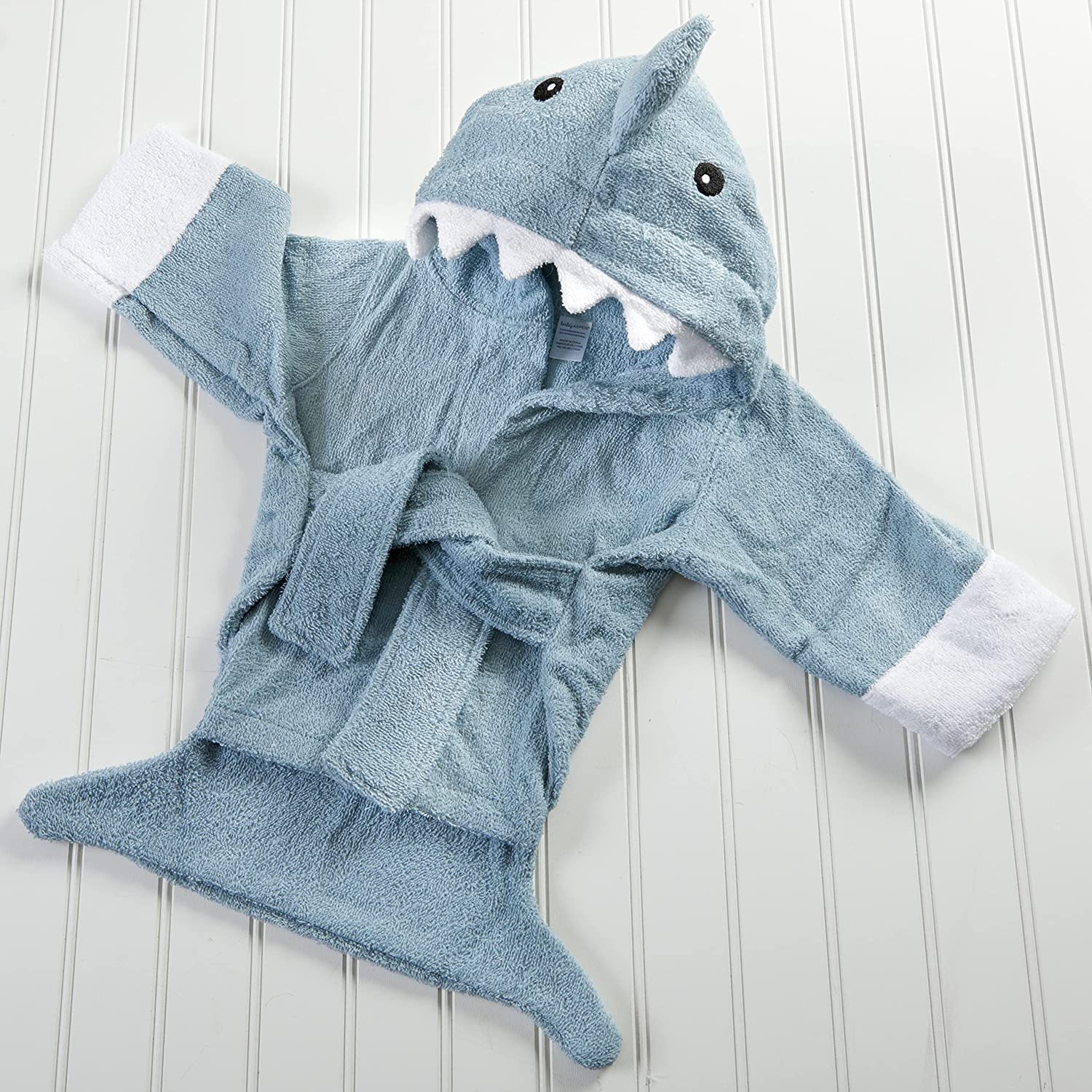 Mom and Dad are going fall for this terry-ific sea-inspired robe--hook, line and little stinker. After a refreshing bath time for baby, they'll want to wrap their wiggly, wet one in something cozy, absorbent and cute. Baby Aspen's Terry Shark Robe is reel-y fun and oh, so fine.