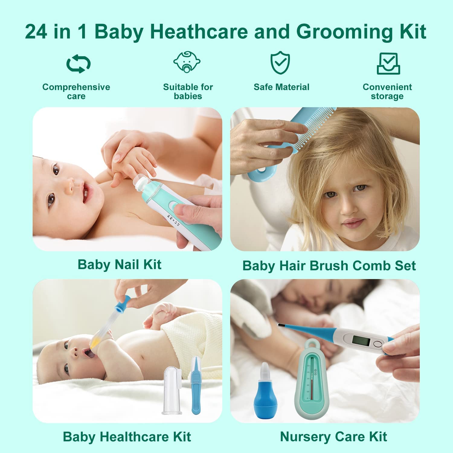 Baby Grooming Kit, 25 in 1 Baby Healthcare and Grooming Kit, Baby Electric Nail Trimmer Set Newborn Nursery Health Care Set for Baby Boys Girls Kids Haircut Tools (0-3 Years+) (Blue)