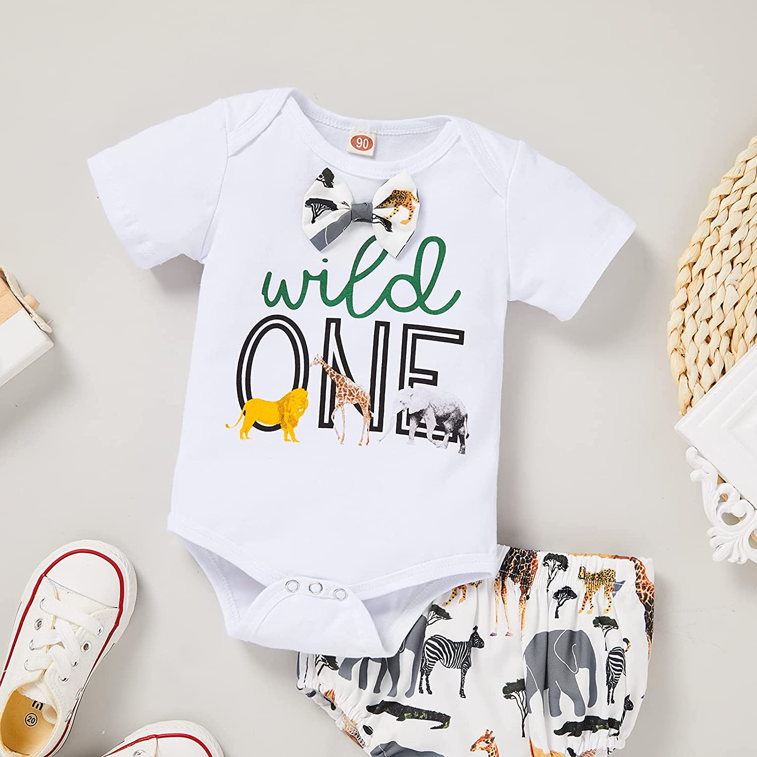 Baby Kids Birthday Giraffe Romper Outfits Infant Boy Wild One Gentleman Bodysuit Cake Smash Party Clothes