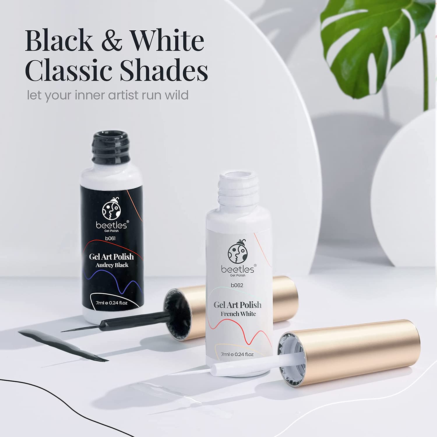 Beetles Gel Polish Nail Art Gel Liner Set- 2 Popular Black White Colors Gel Art Paint for Swirl Nails Euphoria Nail Built Thin Nail Art Brush in Gel Pens Soak off Nail Art Gel Polish Kit Gift Box