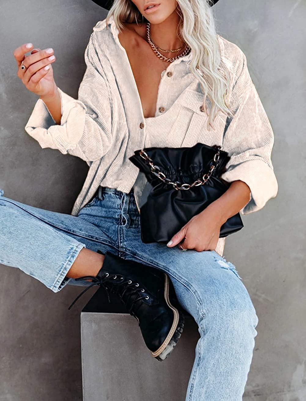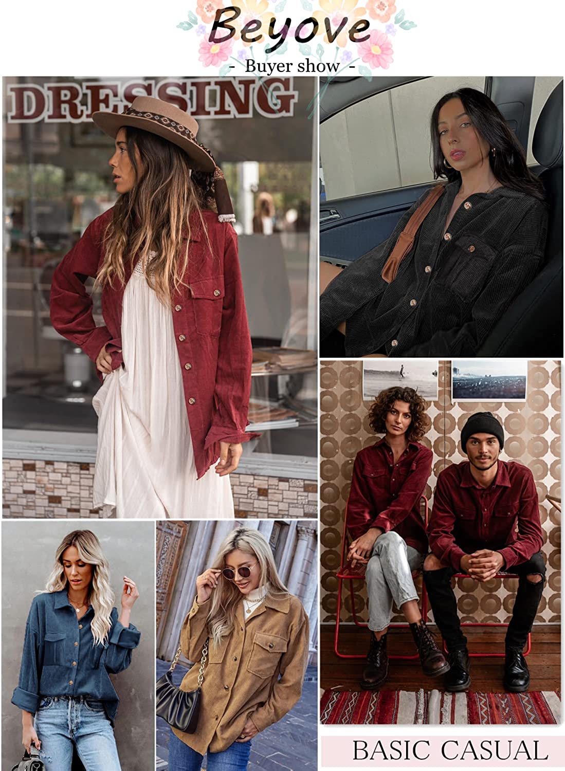 Beyove Women's Corduroy Shirt Long Sleeve Button Down Shacket Jacket Casual Oversized top with Pockets
