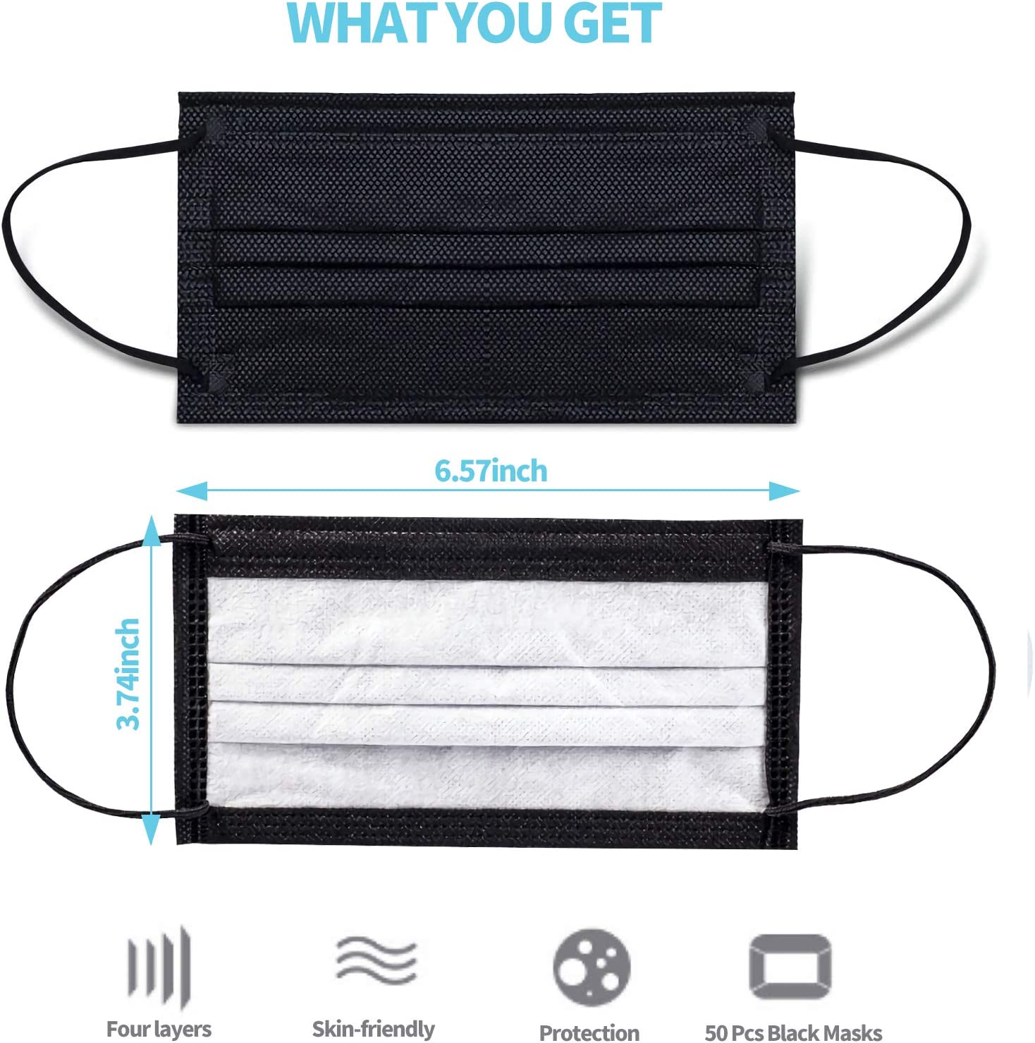 Black Disposable Face Masks 4 Layers Protection 50Pcs, Breathable Dust Mask Mouth Covers for Adult