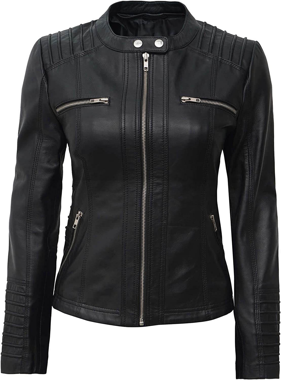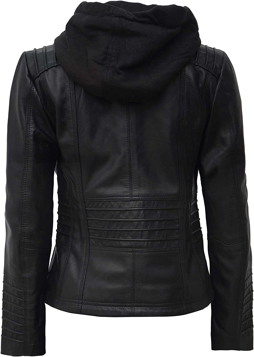 Blingsoul Leather Jacket Women - Real Lambskin Womens Leather Jacket with Removable Hood