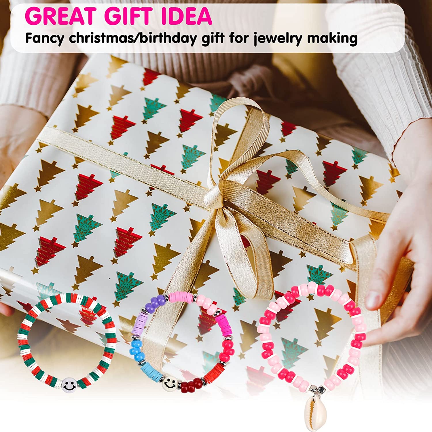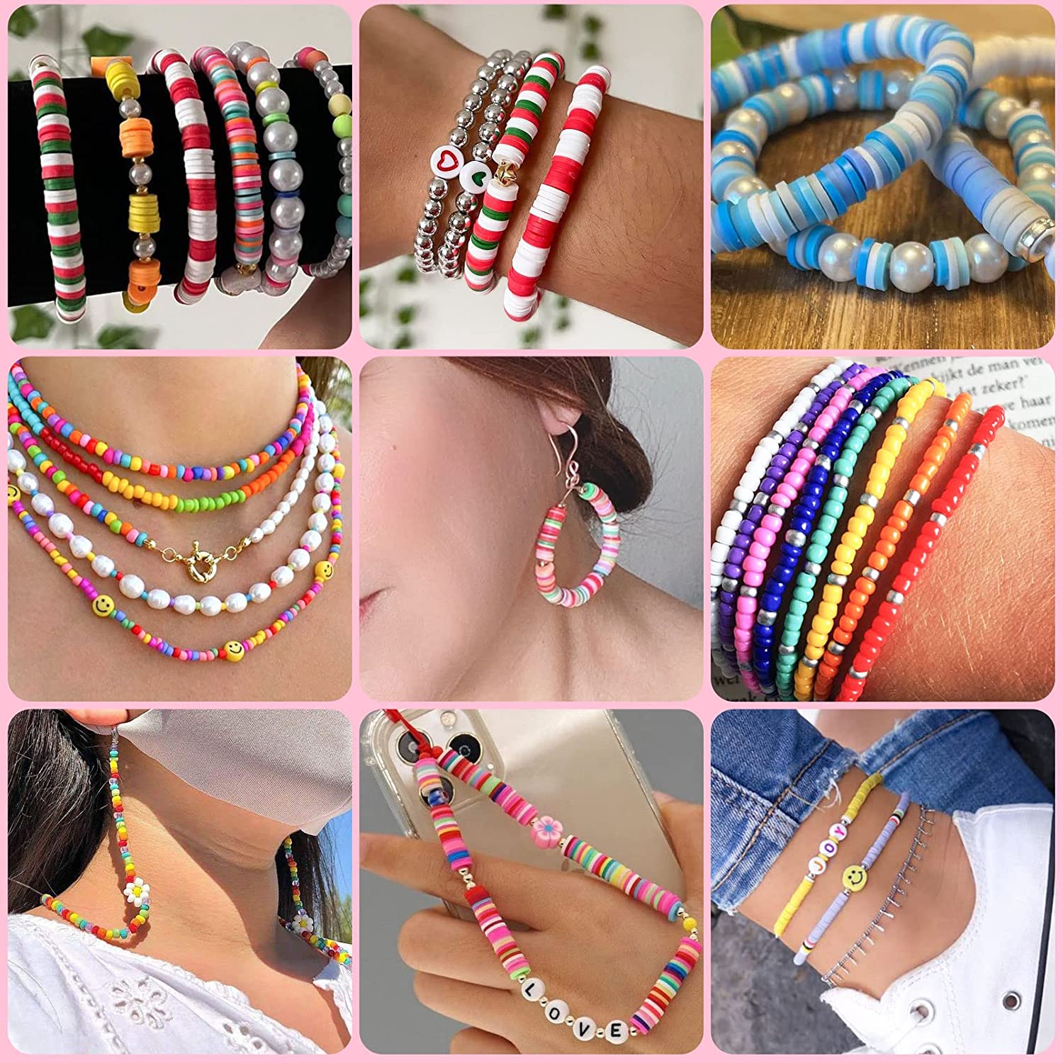 Bracelet Making Kit,Velavior Bead Kit Including 24 Colors 2400pcs Clay Beads,600pcs Pony Beads and 200pcs Letter Beads for Bracelets Jewelry Making with Charm Pendants and Elastic Strings