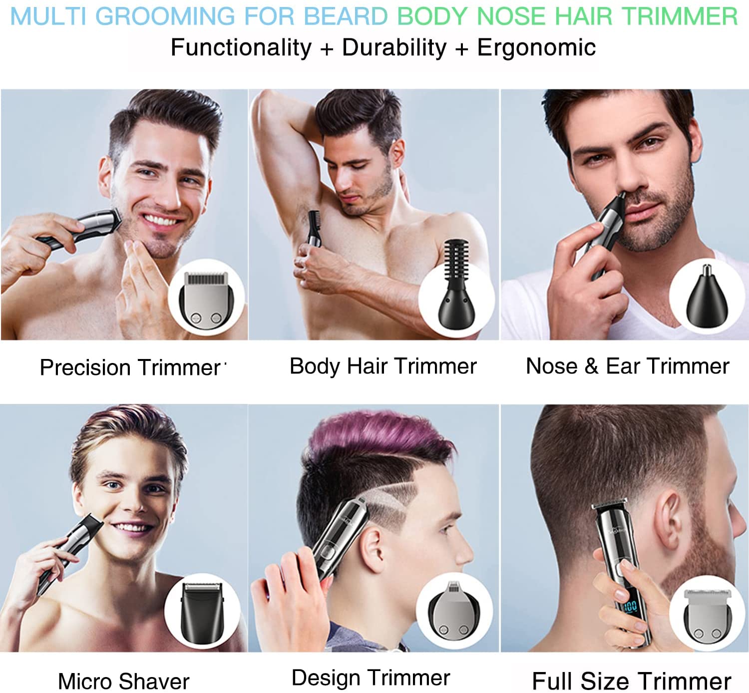 Brightup Beard Trimmer for Men, Cordless Hair Clippers Hair Trimmer, Waterproof Mustache Body Nose Ear Facial Cutting Shaver, Electric Razor All in 1 Grooming Kit, USB Rechargeable & LED Display