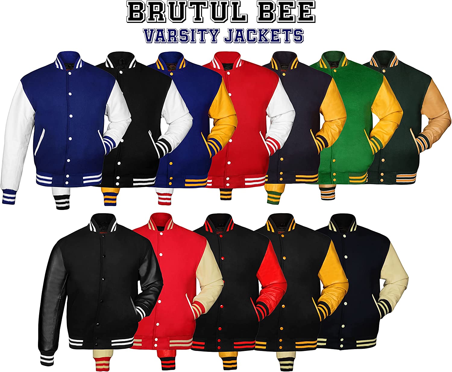 Brutul Bee Original Leather Varsity Letterman Jackets Wool & Leather Original American Style Varsity Jackets
