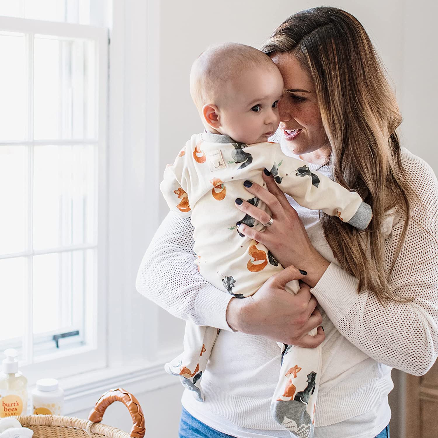 Burt's Bees Baby - Sleep & Play Zip-Up Footie PJs (NB - 9M): From playtime to bedtime and everything in between, our sleep & play has your little bee covered in gentle GOTs certified* organic cotton. The new loose fit is roomier than our snug sleeper allowing for plenty of wiggle room! Our hand painted watercolor prints and yarn dye stripe designs feature a diagonal zip front, large gusset for ease of movement, and non-slip bee grip booties. No-scratch convertible mittens included on sizes Newborn & 0-3 Months. Our pajamas come in 3 different styles, so when your little bee outgrows our sleep & play PJs, be sure to look for our snug-fitting Sleepers in sizes 12-24M and our 2-Piece PJs in sizes 12M - 7 Years! *GOTS Certificate Registration No: CU 831717