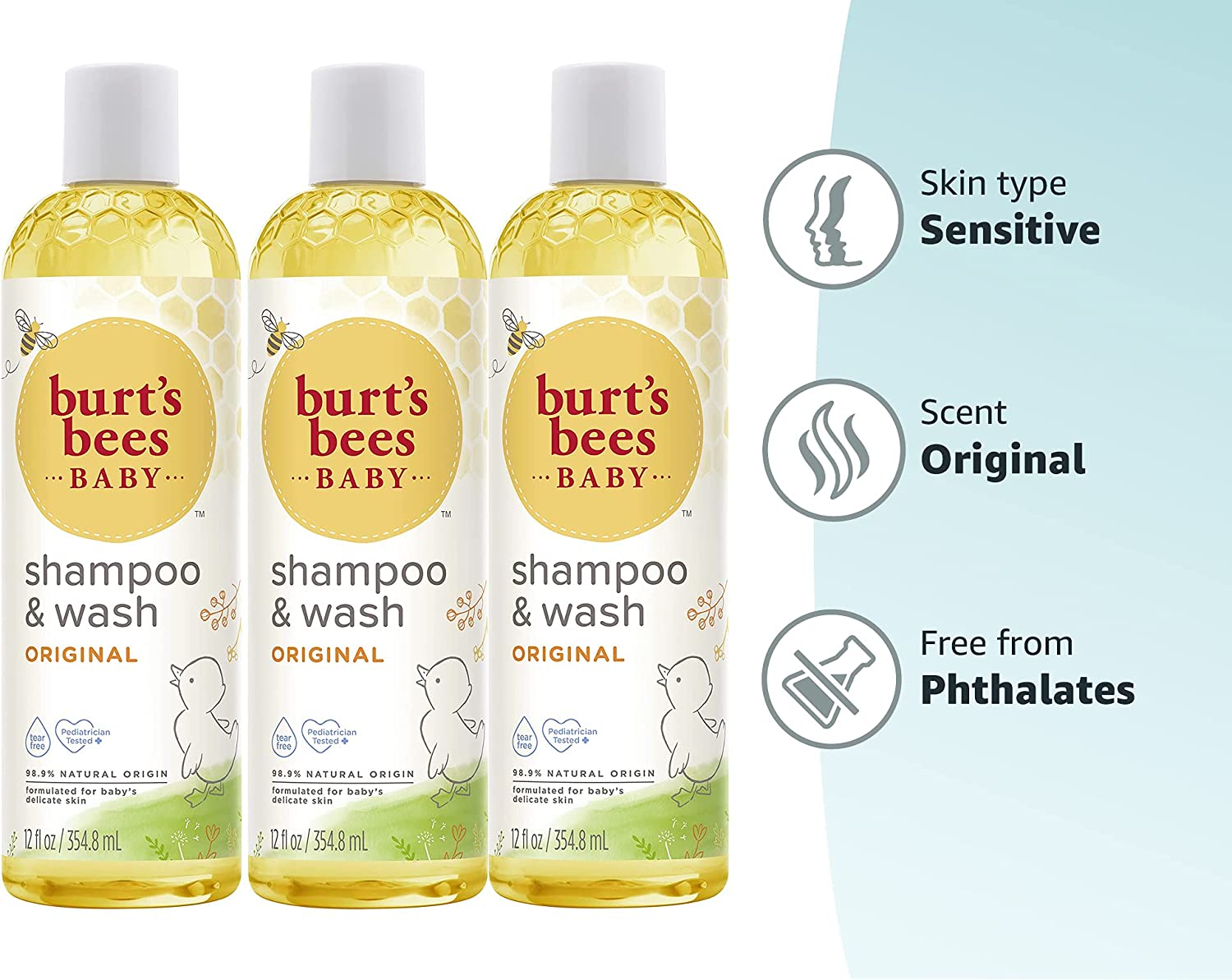 Make bath time a breeze with this tear-free formula that naturally cleans your baby’s sensitive skin and hair. Burt’s Bees Baby Shampoo and Wash is clinically shown to be gentle enough for everyday use and leaves a fresh, clean scent. This naturally foaming, non-irritating baby shampoo and wash is a plant-based formula containing soy proteins to leave your baby clean and smooth. Natural ingredients are formulated for baby’s delicate skin, so you can feel good after every wash. Plus, this natural baby wash is pediatrician tested and contains no phthalates, parabens, petrolatum or SLS. Pump this baby shampoo and wash into your hand, washcloth or directly into the bath. The perfect addition to any baby shower gift or new baby gift set, Burt's Bees Baby Shampoo and Wash is a new baby essential. Discover all the ways to nurture and protect your baby’s skin and hair naturally with Burt’s Bees Baby Bee.