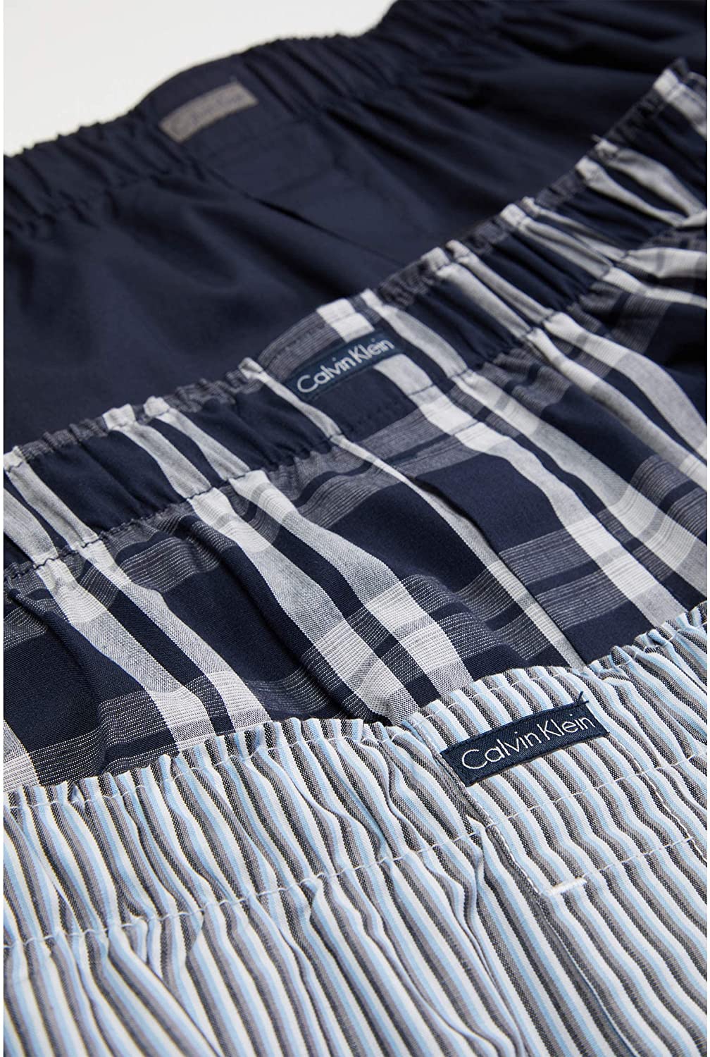 Cotton woven boxers multipack, classic fit with updated elastic for extra comfortable leg openings and a soft, breathable, durable cotton blend waistband with iconic Calvin Klein logo. Functional fly 3-pack