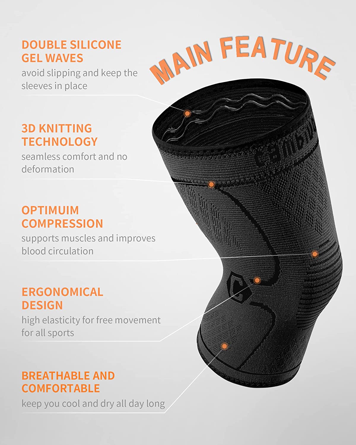 CAMBIVO 2 Pack Knee Brace, Knee Compression Sleeve Support for Men and Women, Knee Pads for Running, Hiking, Meniscus Tear, Arthritis, Joint Pain Relief