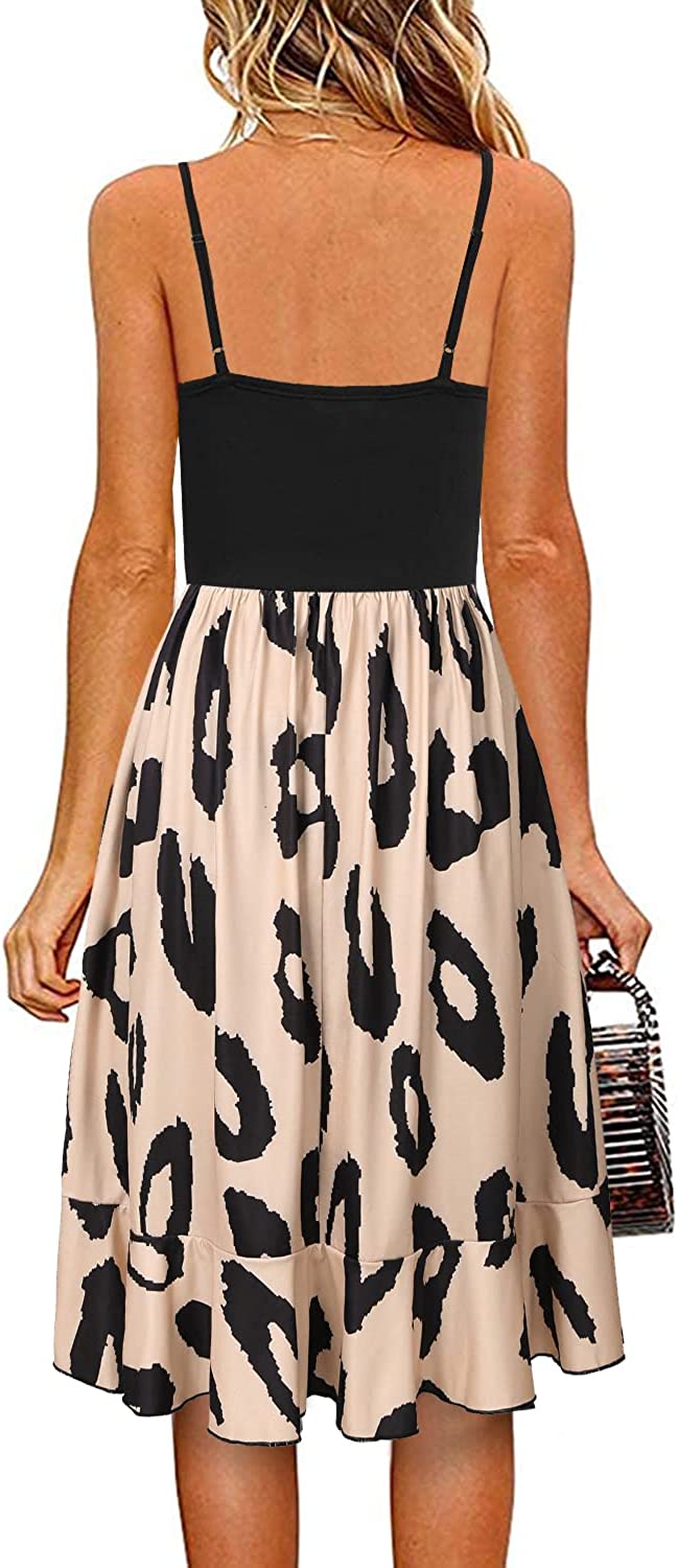 Casual Dresses for Women Sleeveless V Neck Floral Summer Beach Dress A Line Spaghetti Strap Sundresses with Pockets