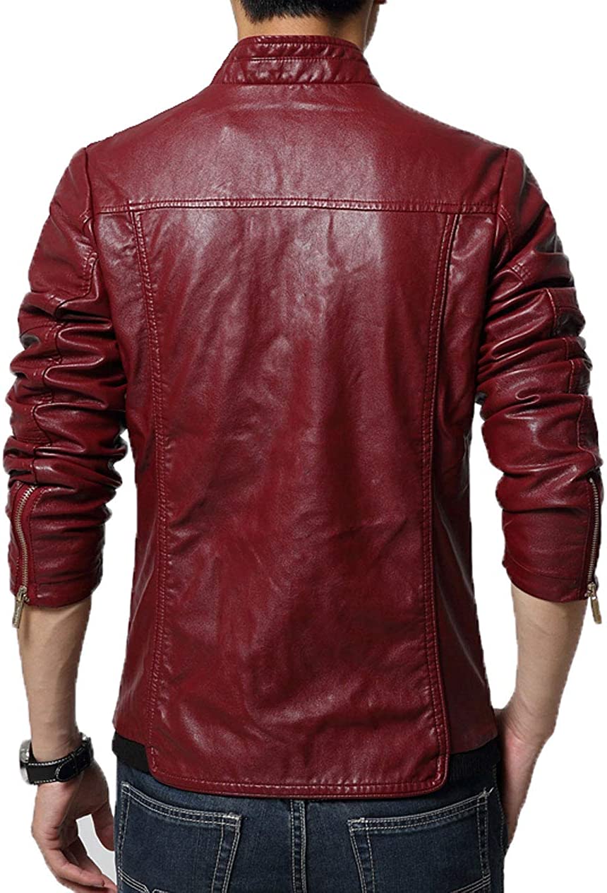 chouyatou Men's Cool Stylish Slim Fit Stand Collar Lightweight Bomber Faux Leather Jacket Coat