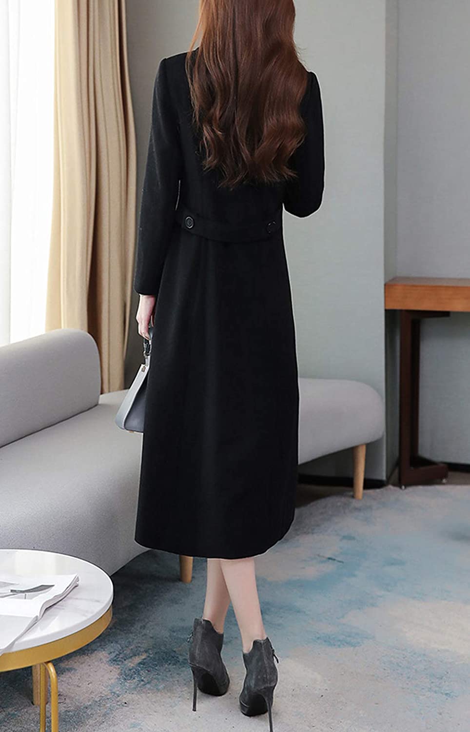 chouyatou Women's Chic Shawl Collar Work Double Breasted Maxi Long Wool Pea Coat