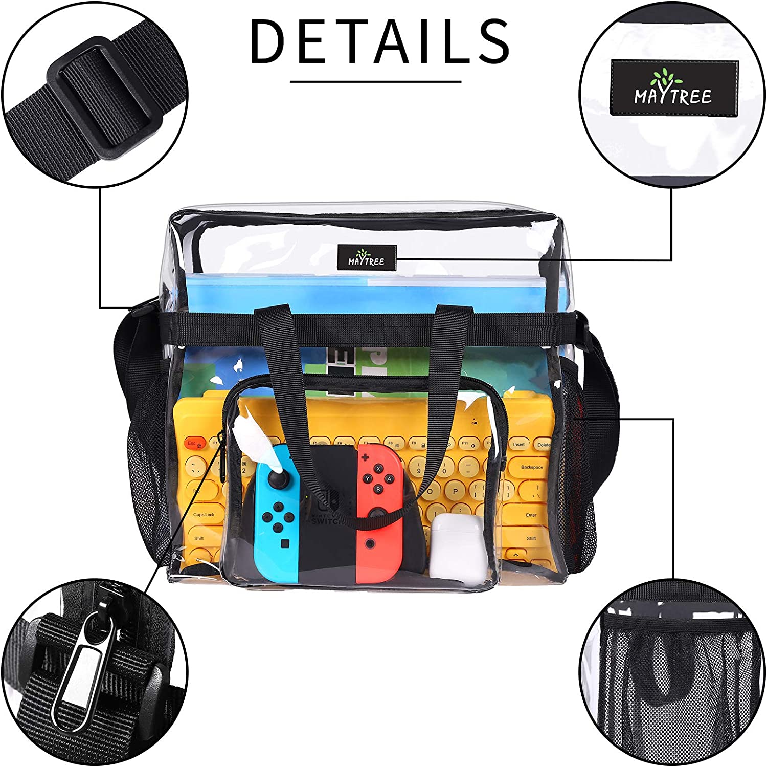 Clear Bag Stadium Approved, Transparent See Through Clear Tote Bag for Work, Sports Games-12 x12 x6