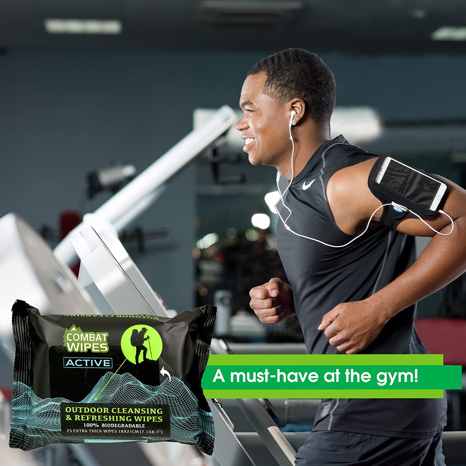 Combat Wipes ACTIVE Outdoor Wet Wipes | Extra Thick, Ultralight, Biodegradable, Body & Hand Cleansing/Refreshing Cloths for Camping, Gym & Backpacking w/ Natural Aloe & Vitamin E (25 Wipes)