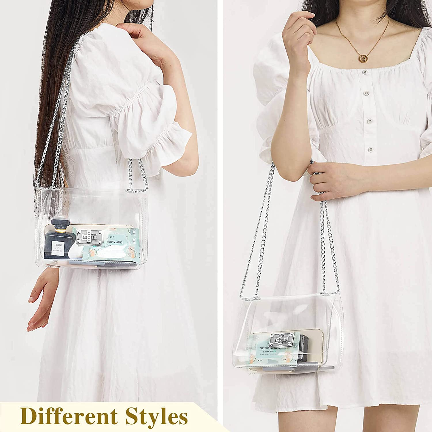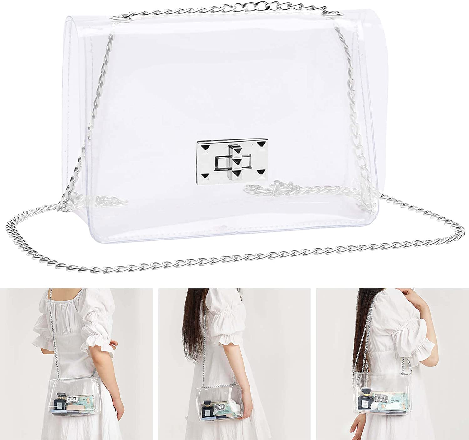 - Clear purse with fashion gold-tone or silver-tone hardware, stylish and trendy